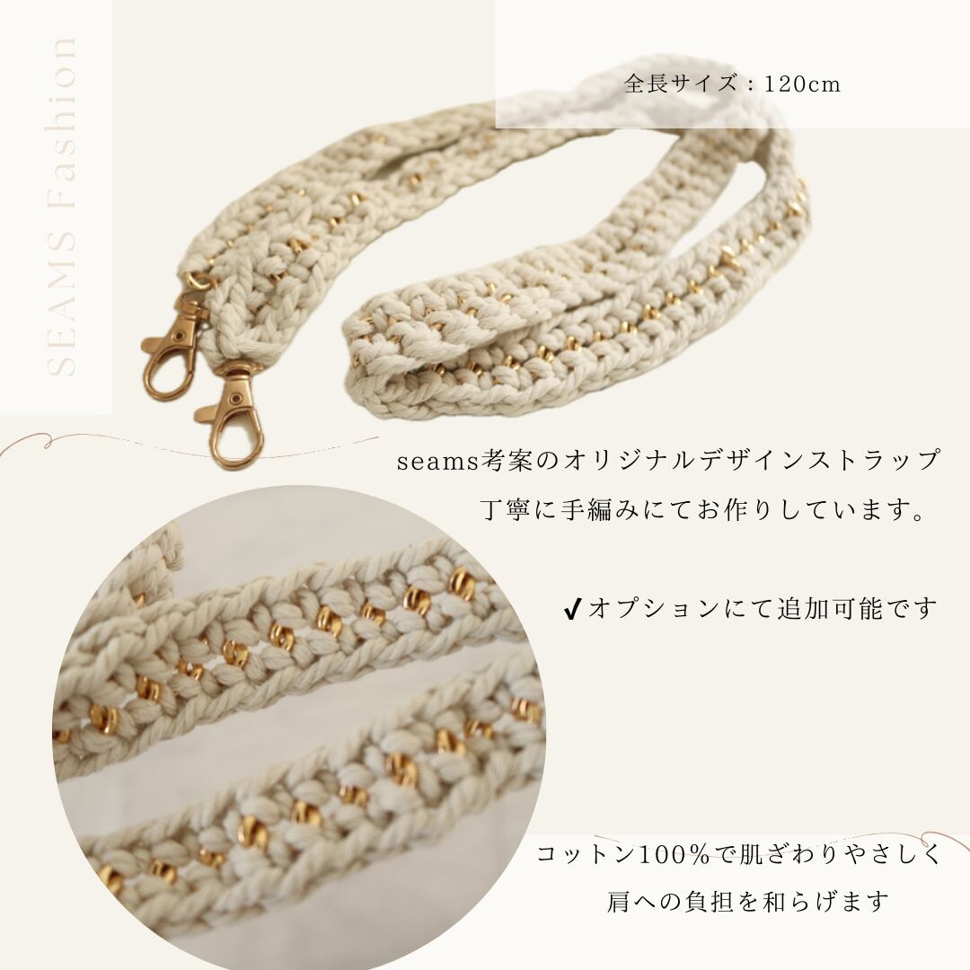 ピュアコットンヤーンにて丁寧に手編みしたSEAMS考案オリジナルストラップになります。