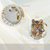 虎さんのデコレーションブローチ キーホルダー 刺繍ブローチ ビーズブローチ beige&gold