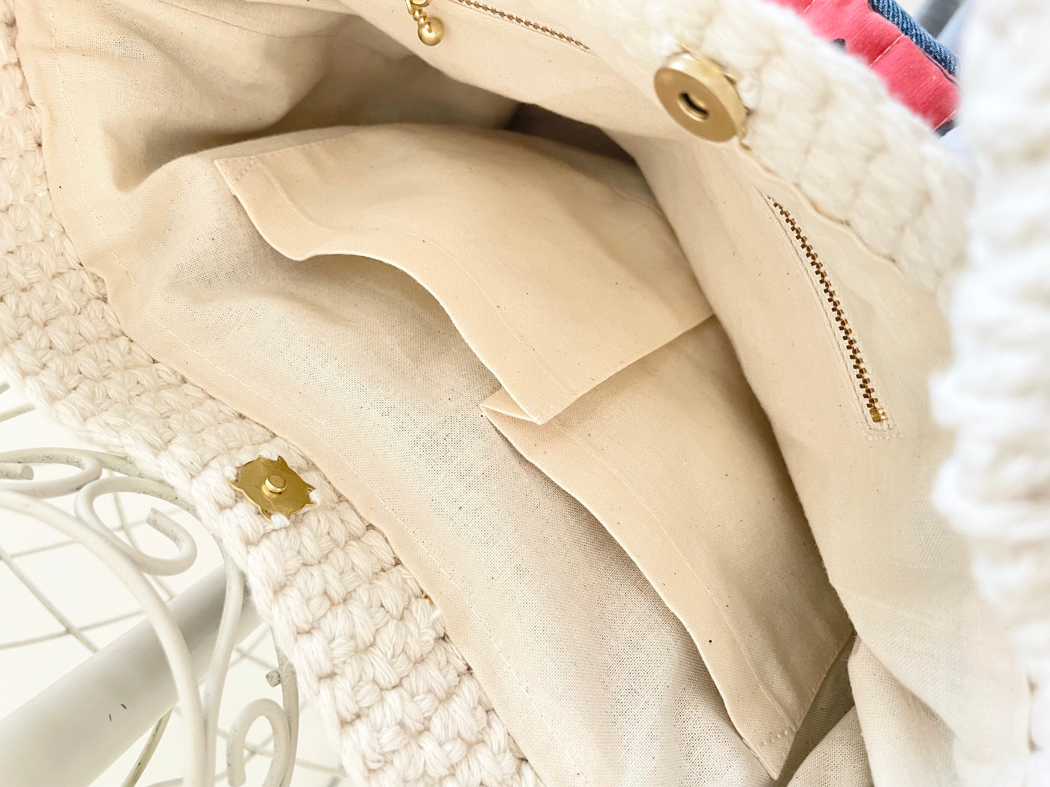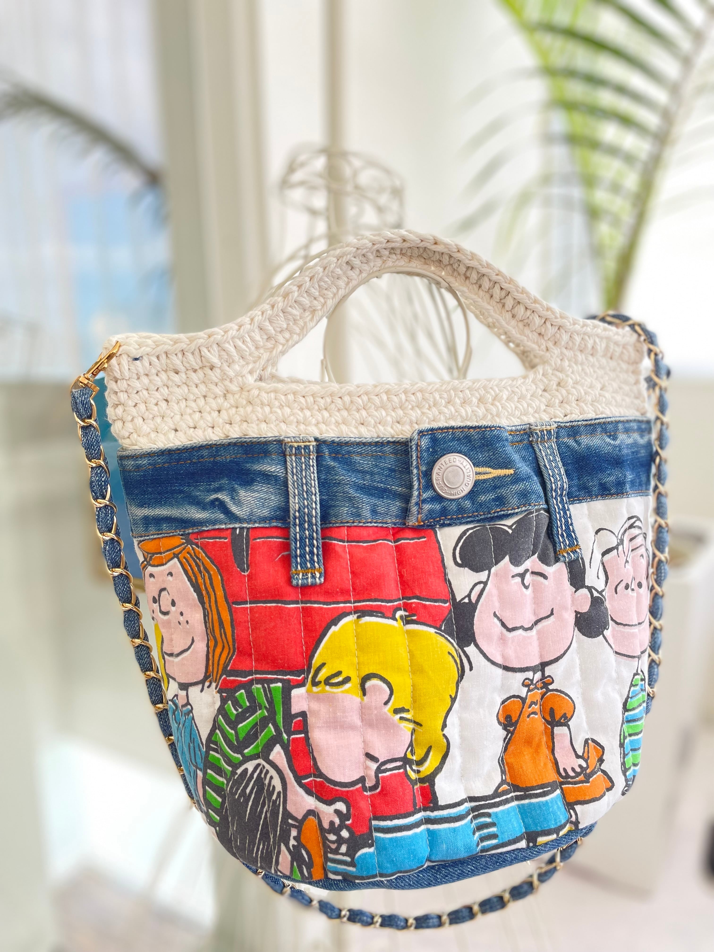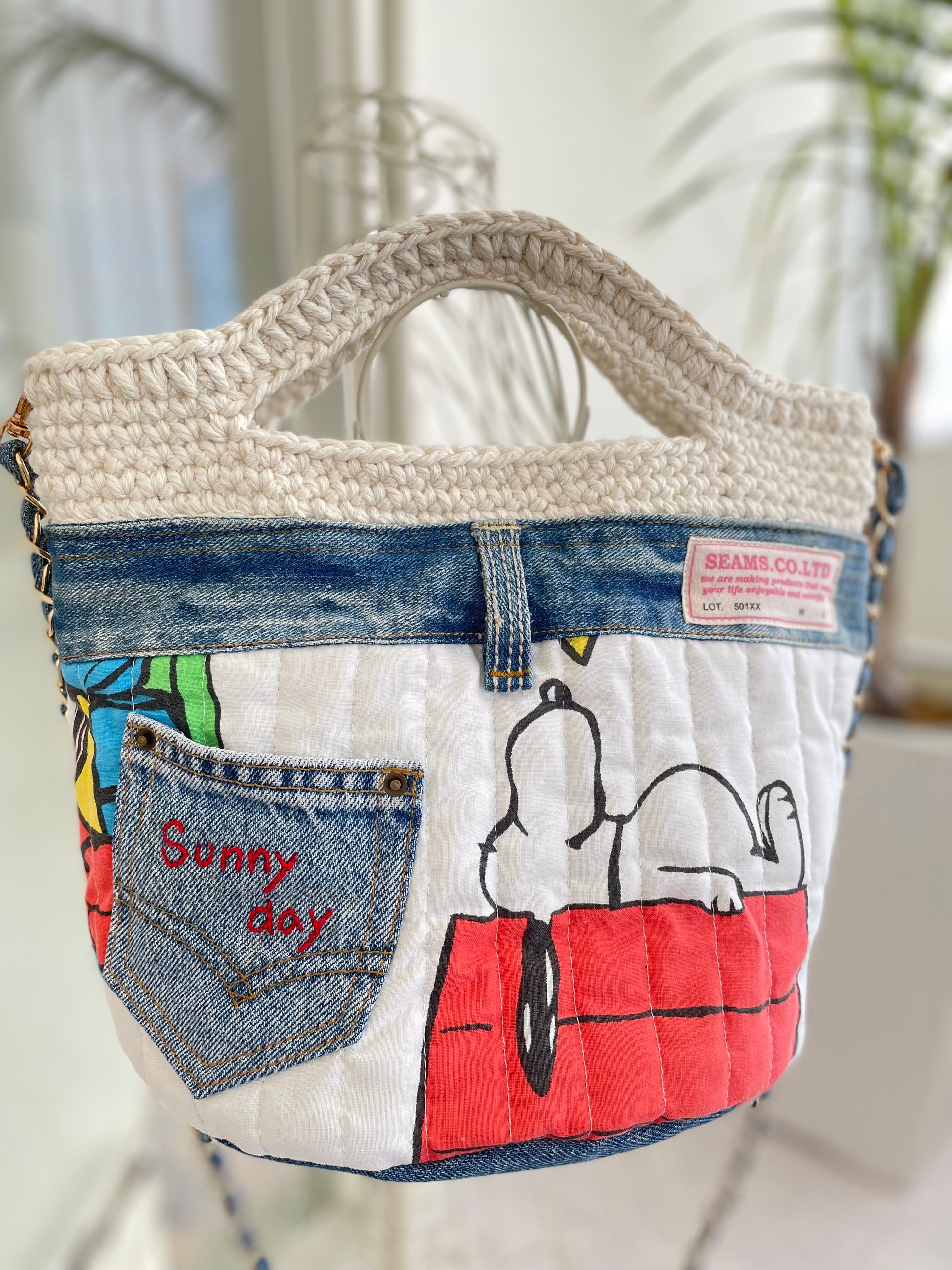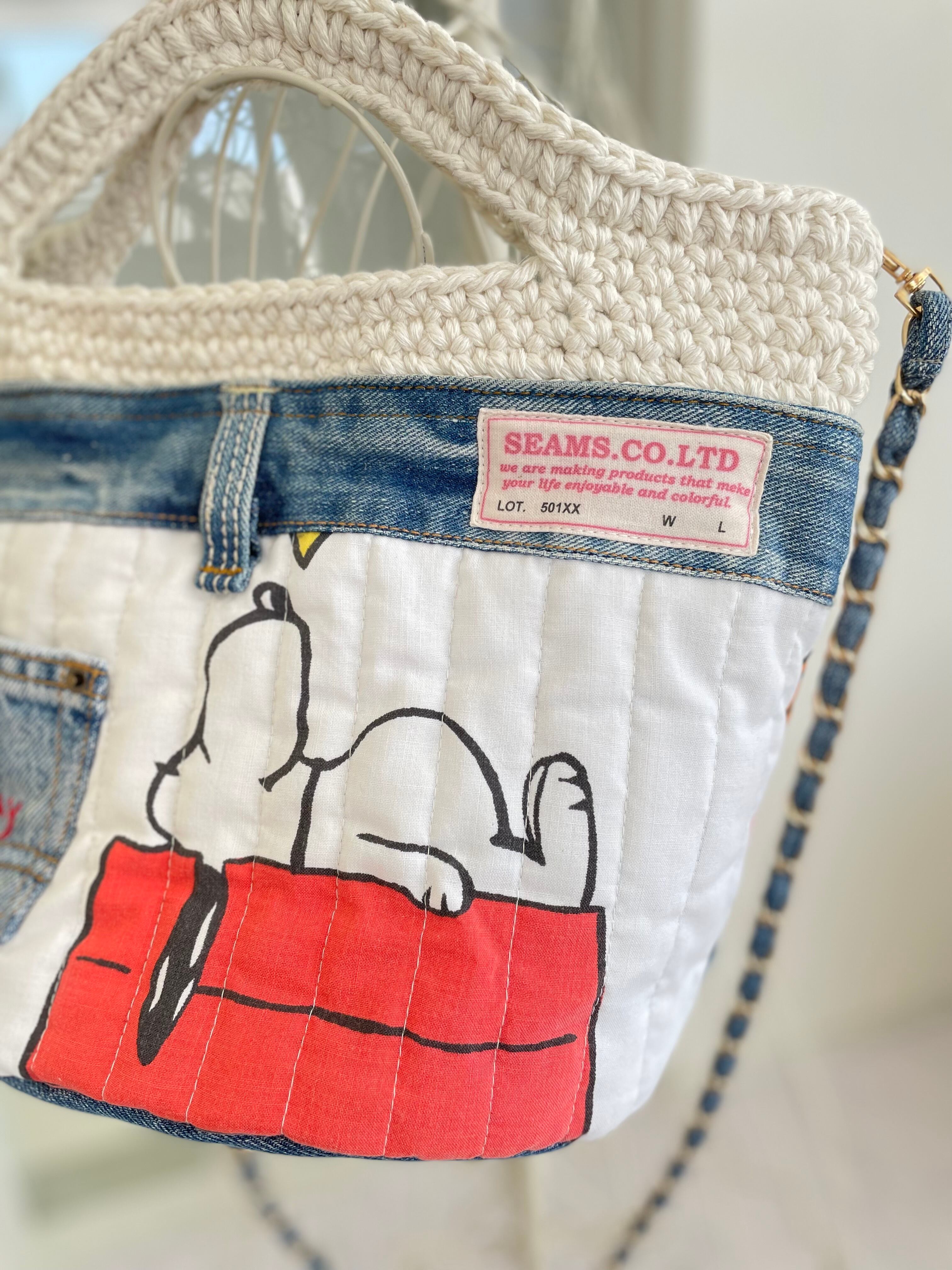 SEAMSオリジナルデザイン 手編みの持ち手つきシーツリメイクバッグ