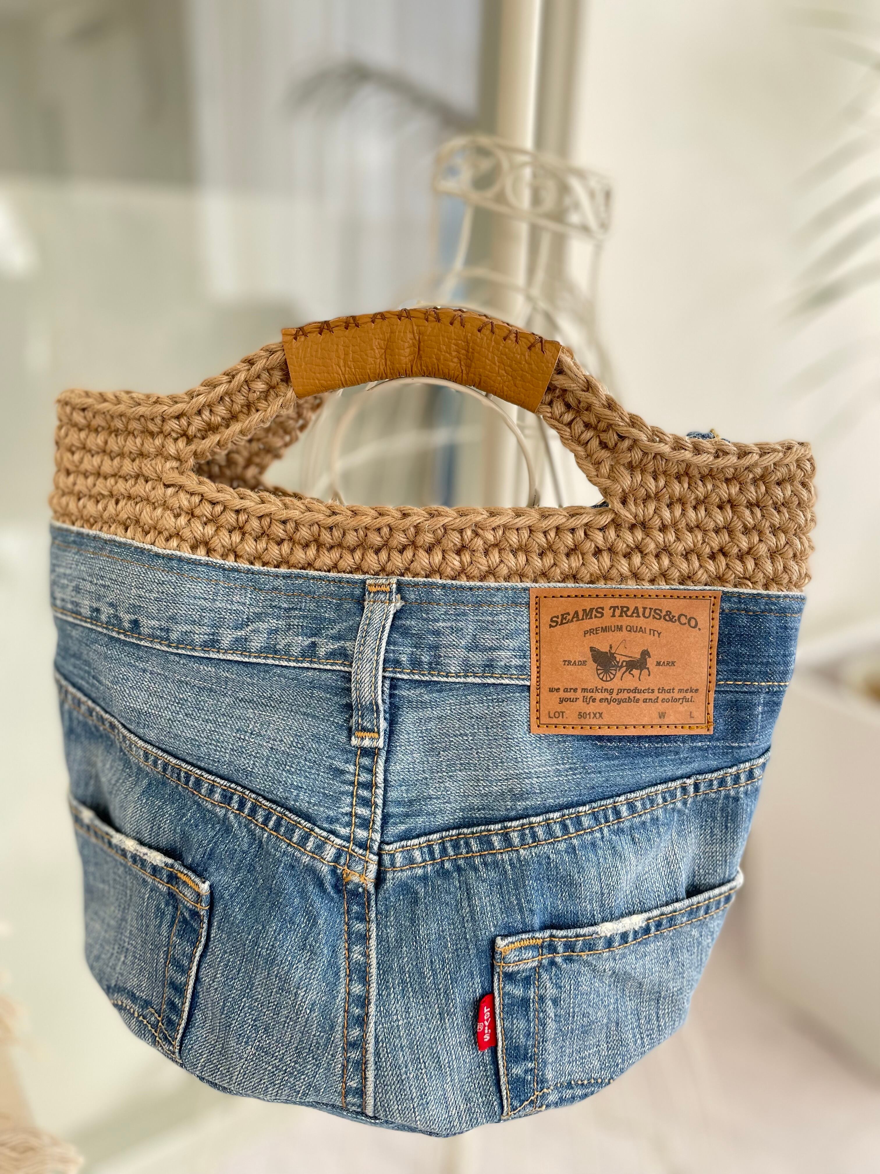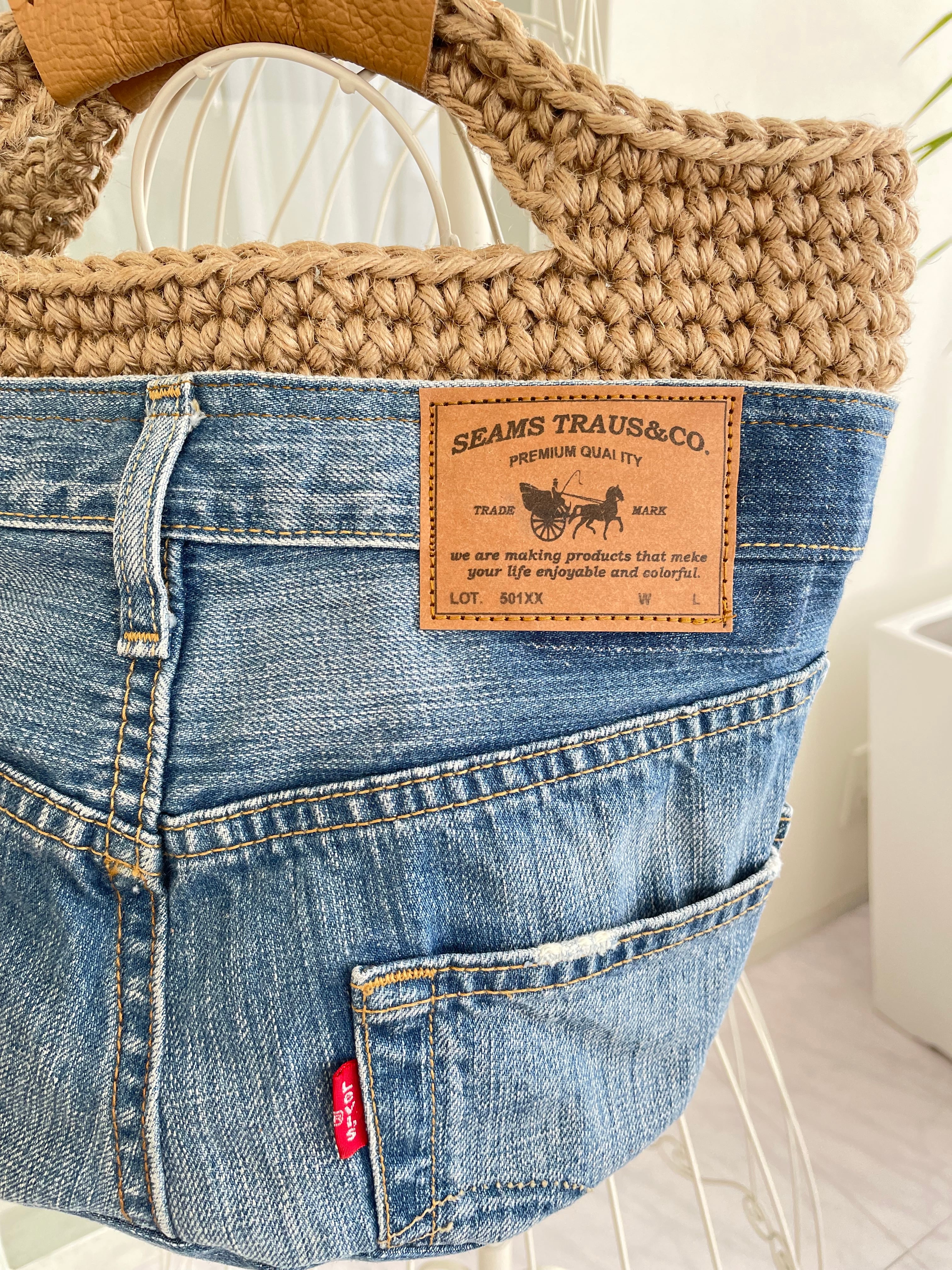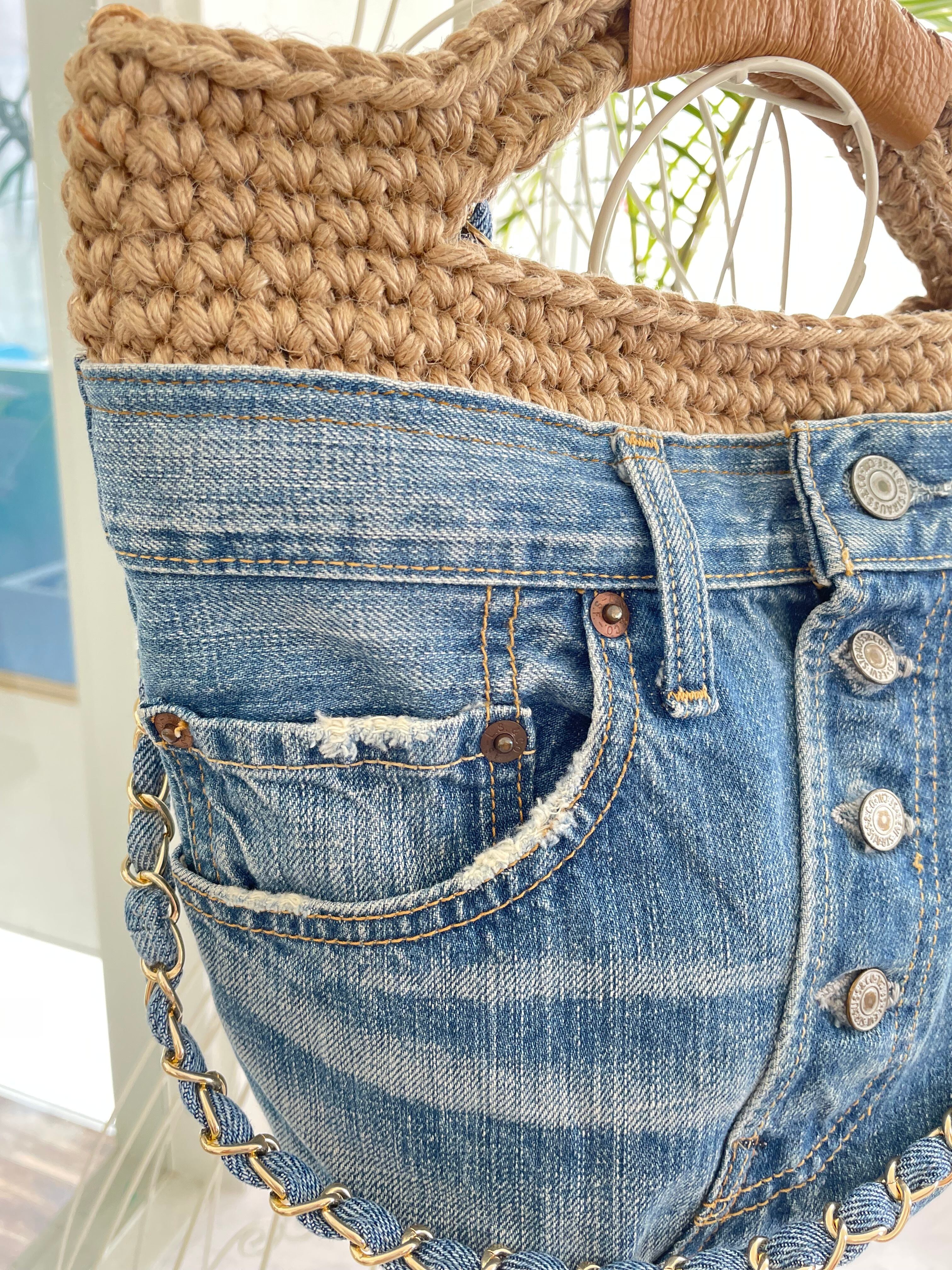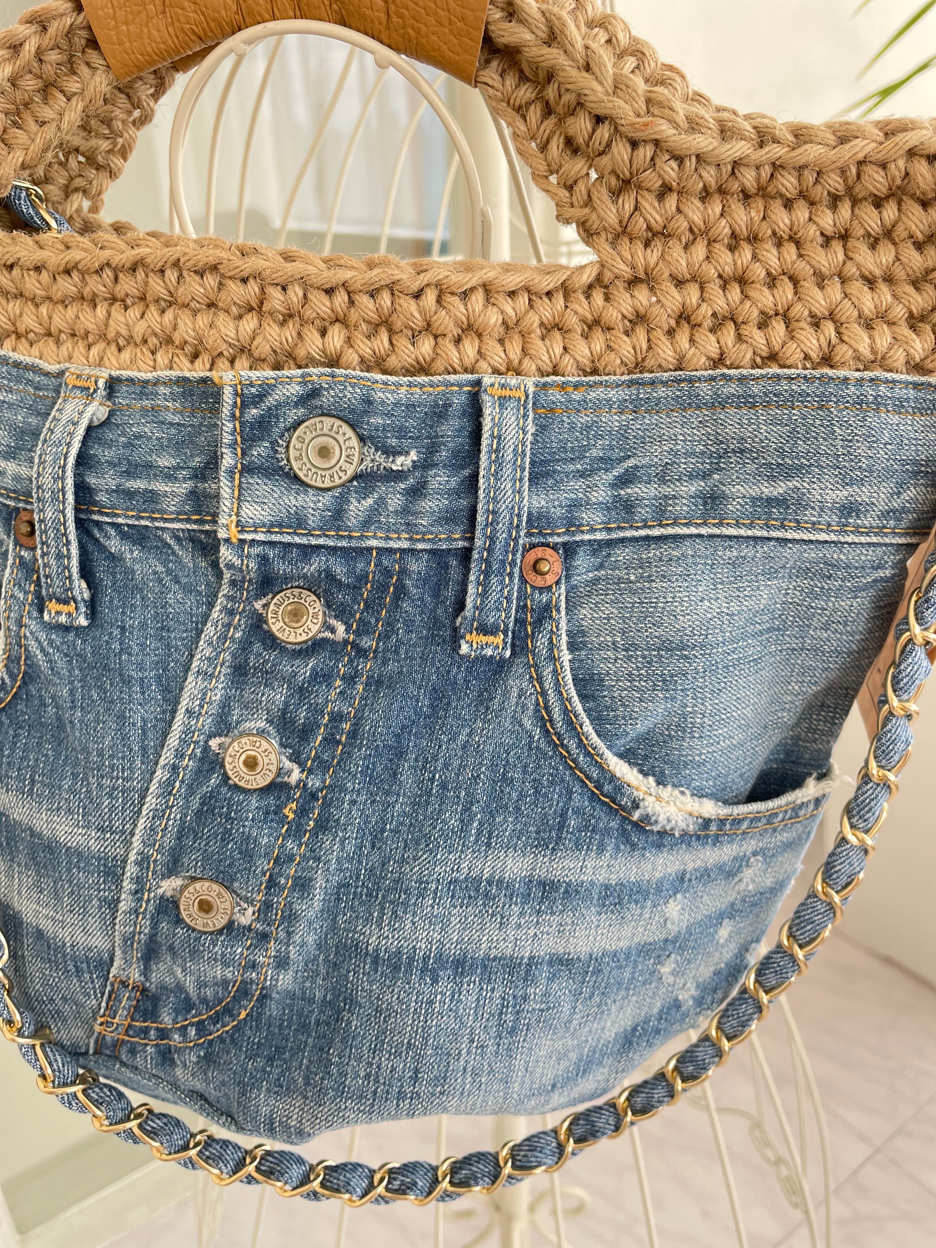 手編みの持ち手とヴィンテージ生地の組み合わせは唯一無二、