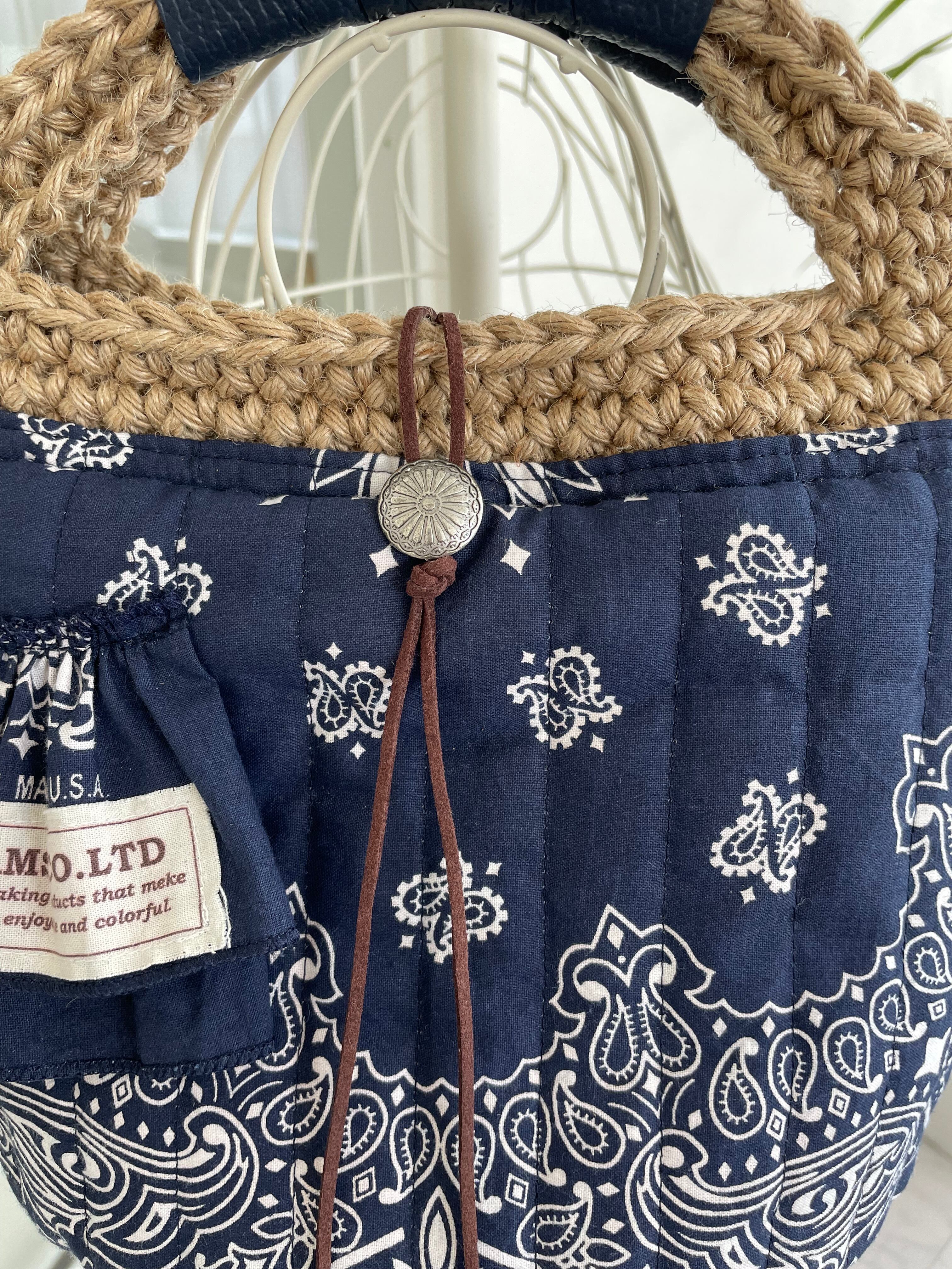 麻の手編みハンドル USAペイズリーバッグ