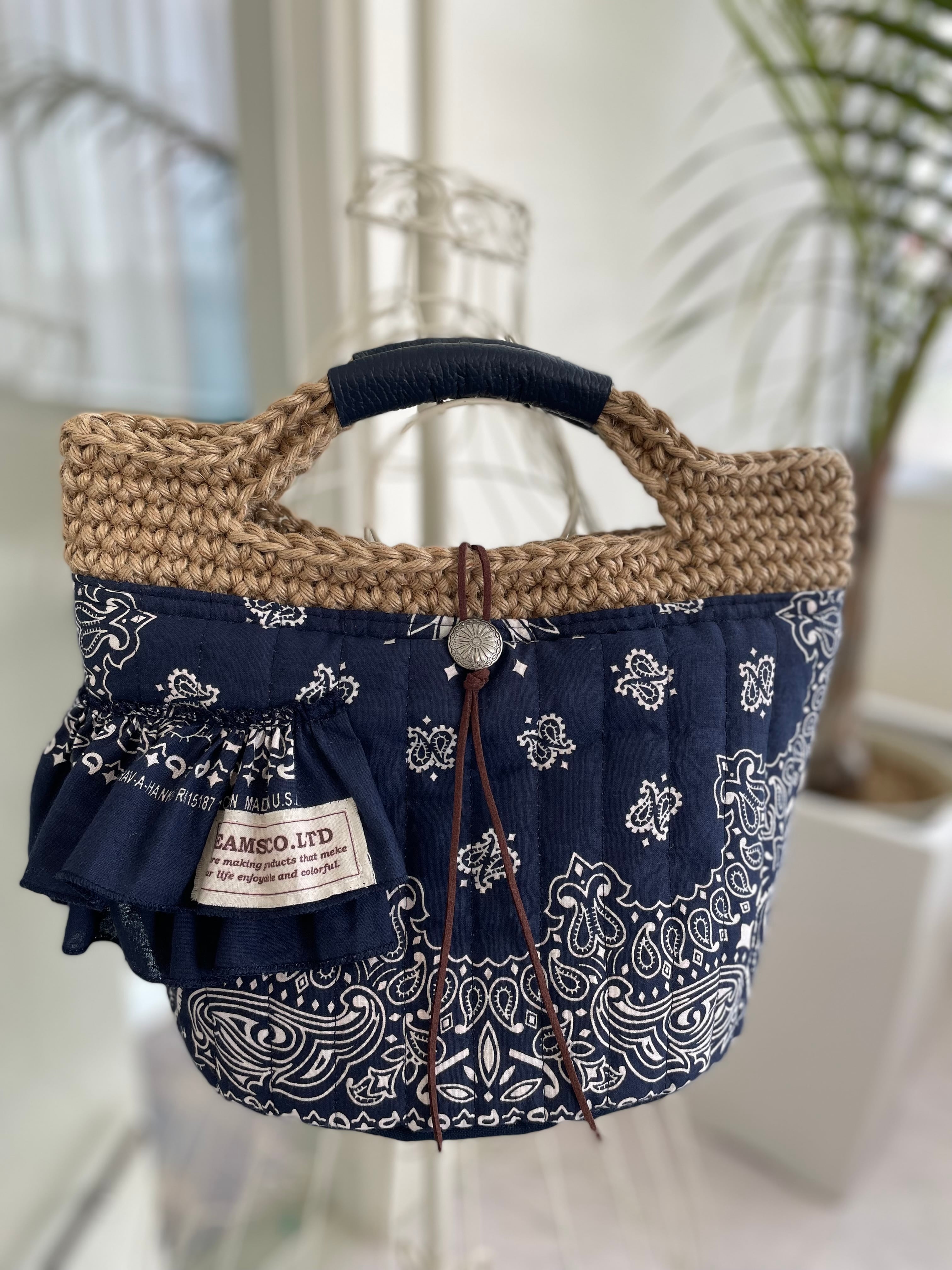麻の手編みハンドル USAペイズリーバッグ mocamoca0503様専用