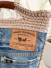 ピュアコットン手編みハンドル&デニムリメイクトートバッグ
